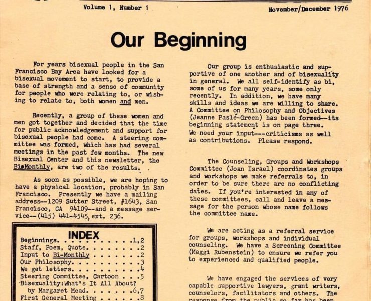 San Francisco Biseksüel Merkezi’ne ait bültenin ilk sayfası